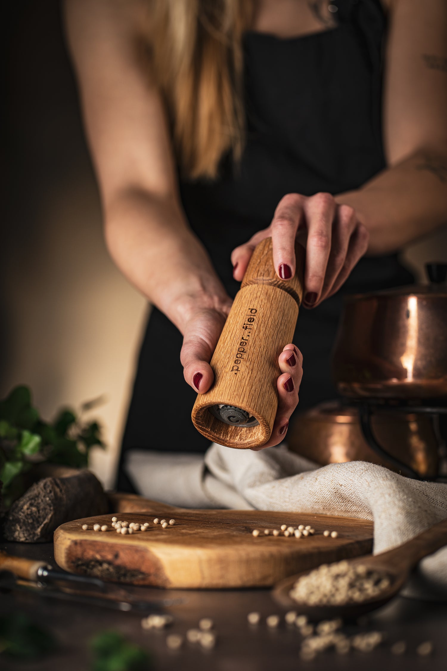 Le moulin de 17 centimètres de haut a été conçu pour être une décoration dans chaque cuisine, parfaitement adapté à la main et moudre avec lui est un plaisir. Vous pouvez combiner ce moulin avec d'autres types de moulins scandinaves afin d'avoir toujours sous la main du poivre de Kampot fraîchement moulu de chaque variété.